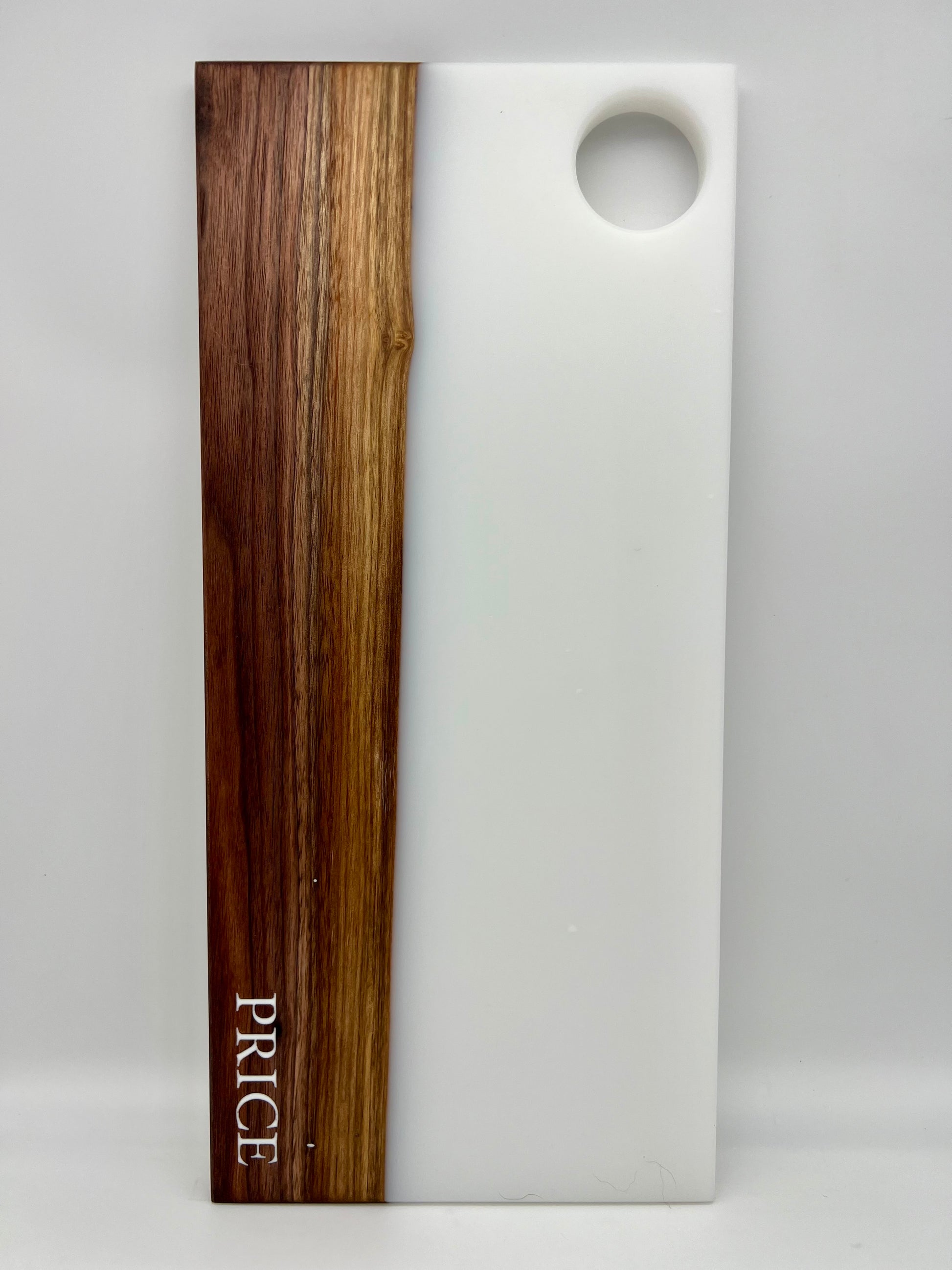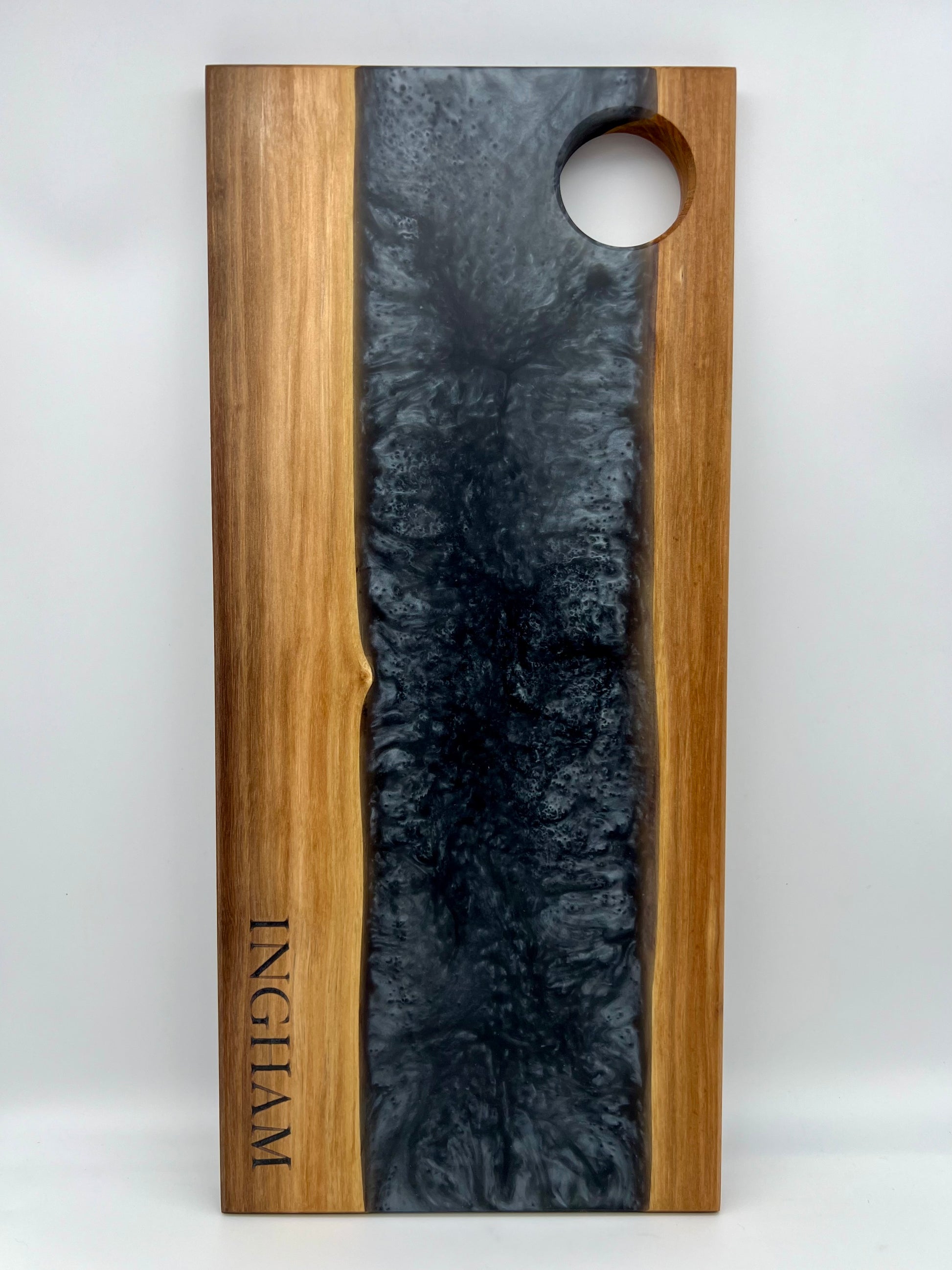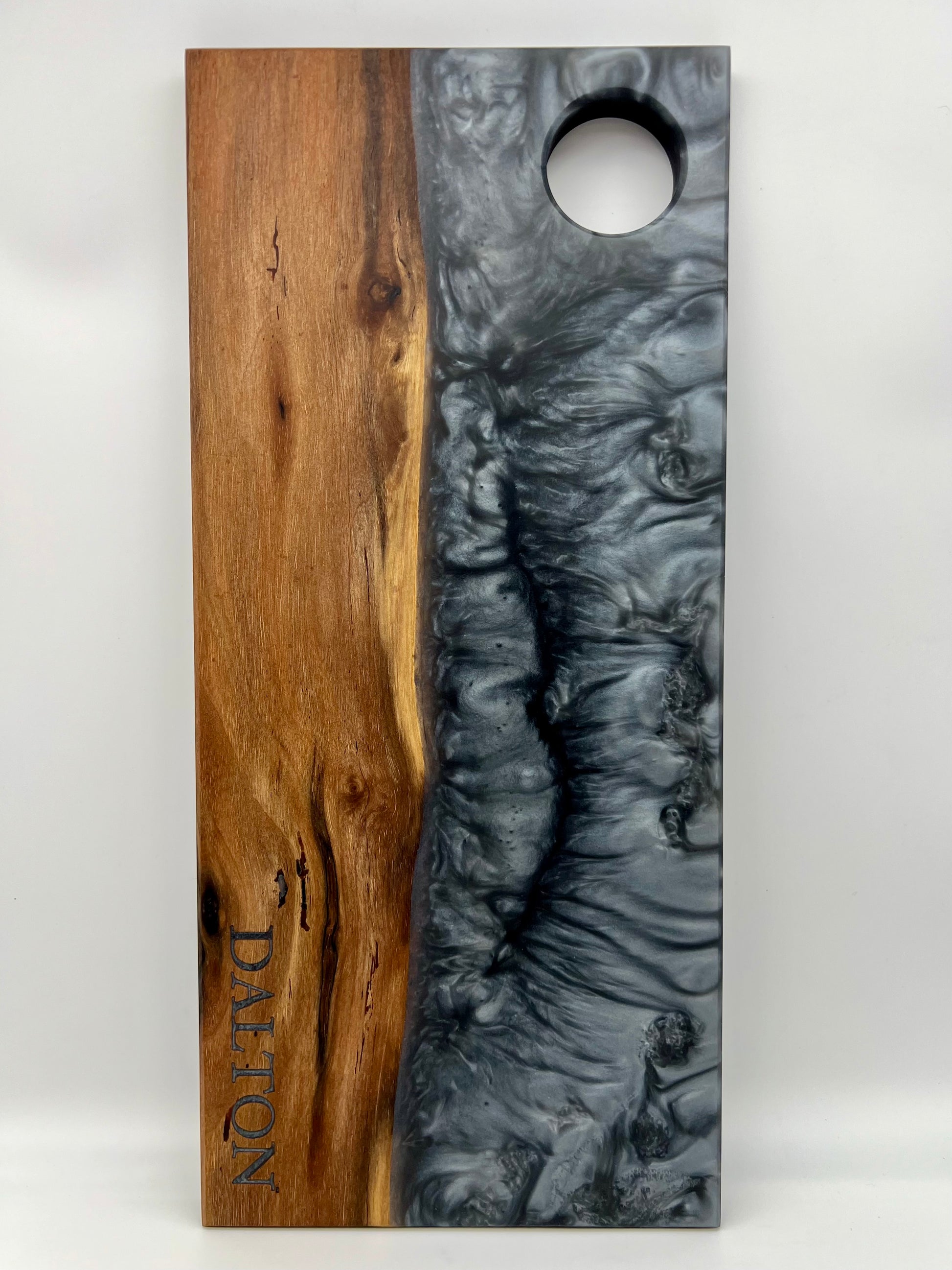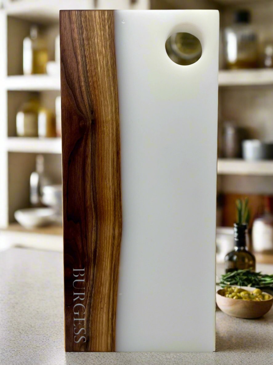 YOU choose what to engrave, and I backfill it with the same epoxy as the rest of your board.