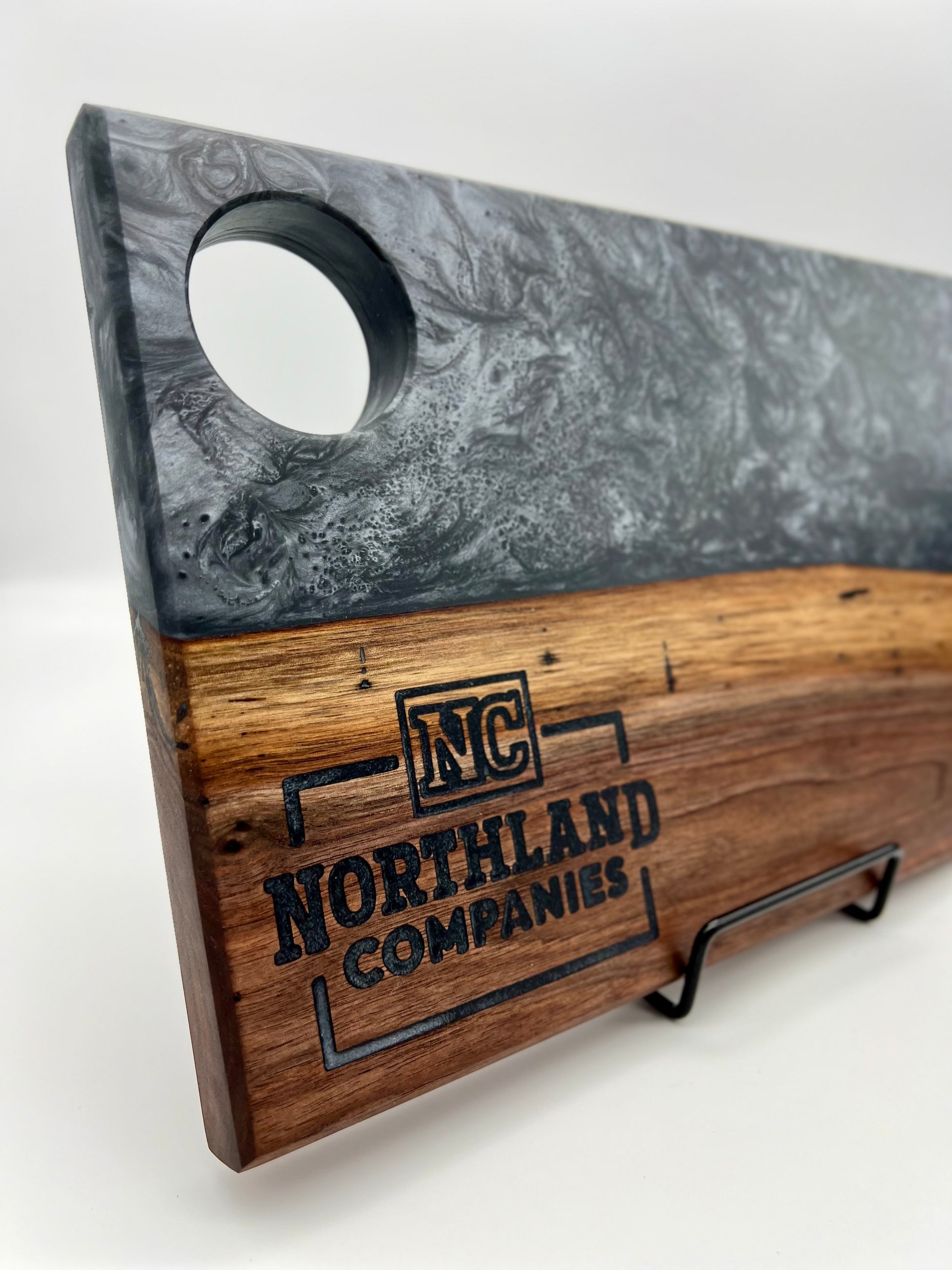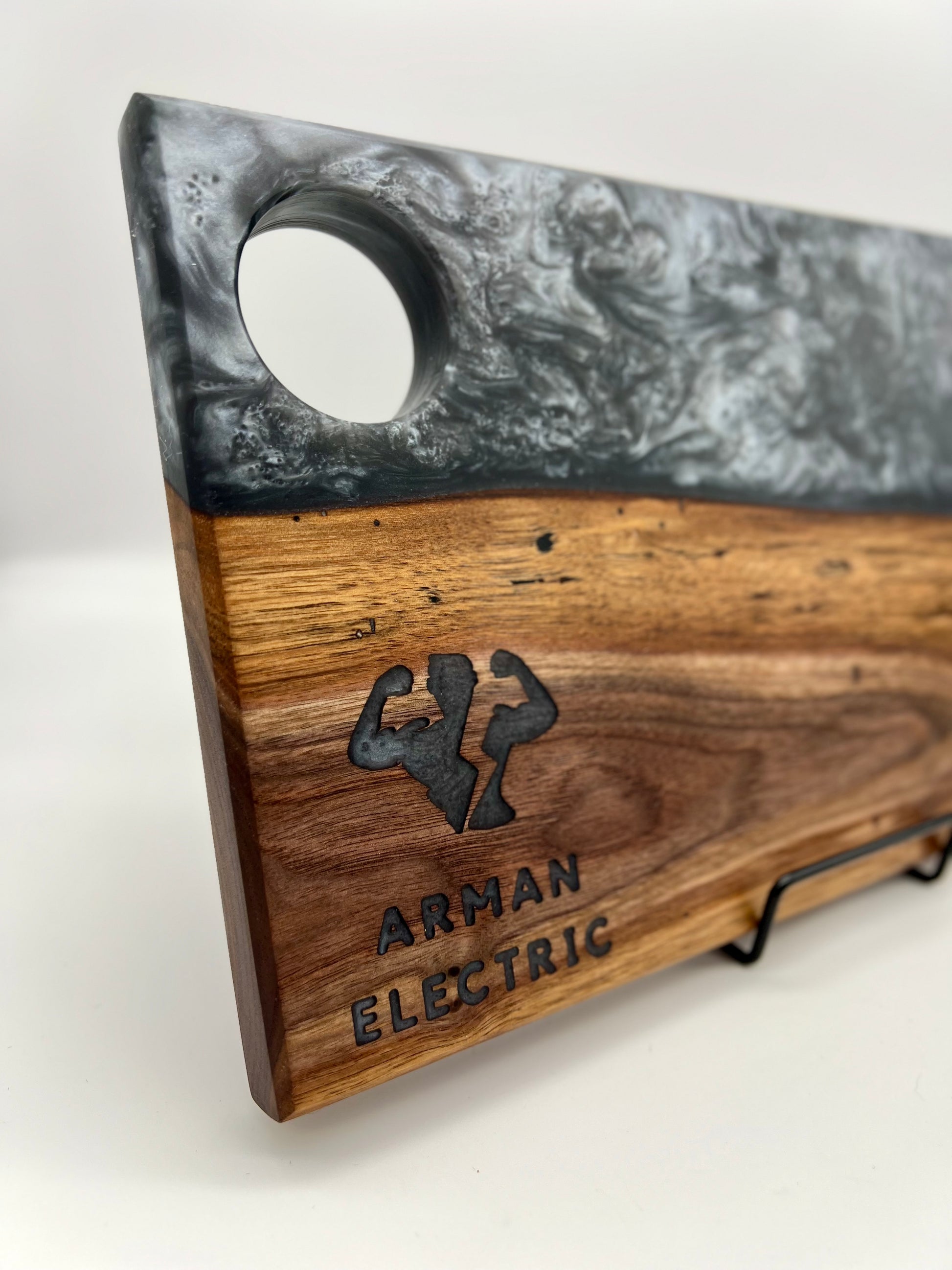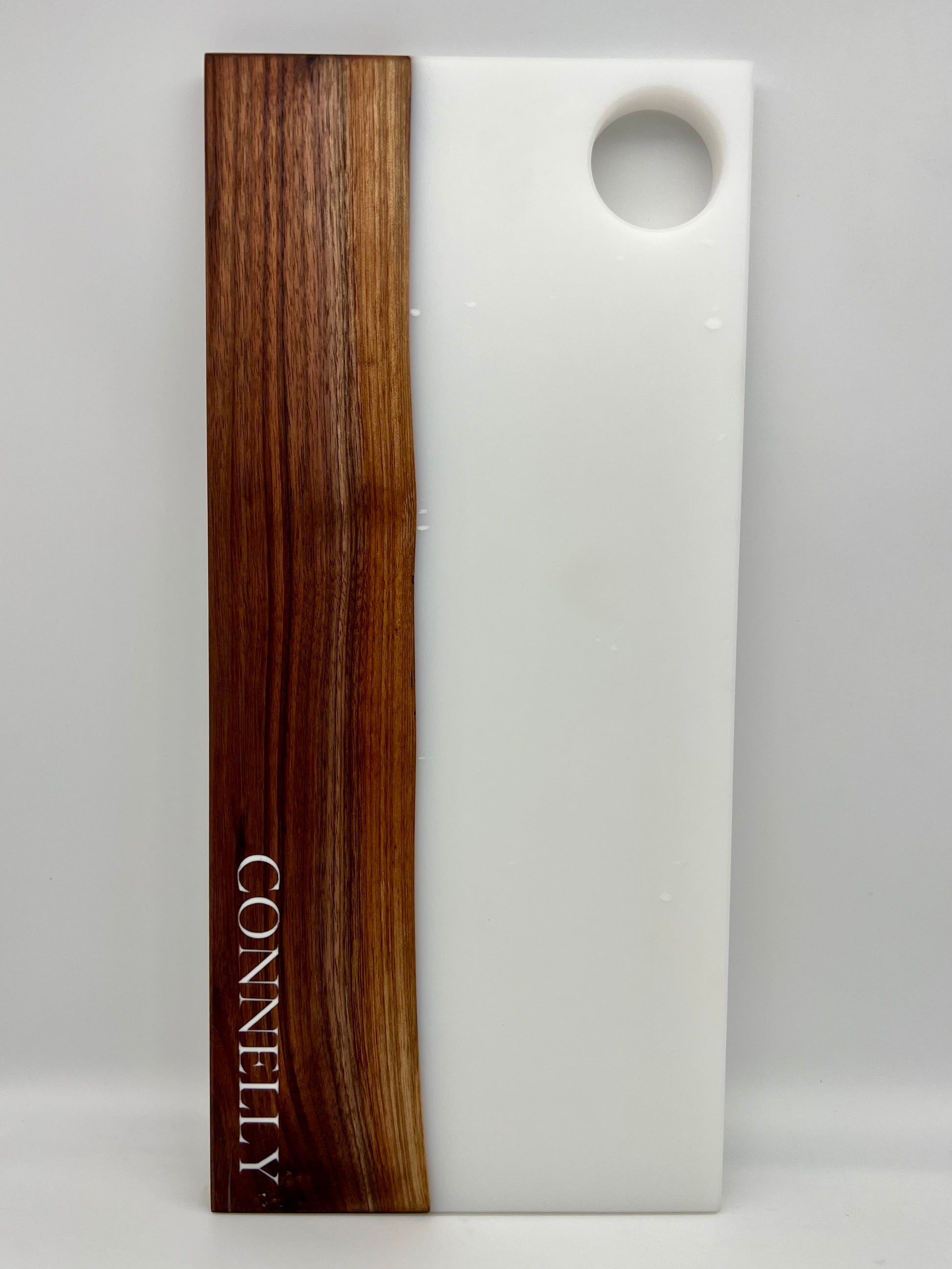 YOU choose what to engrave, and I backfill it with the same epoxy as the rest of your board.