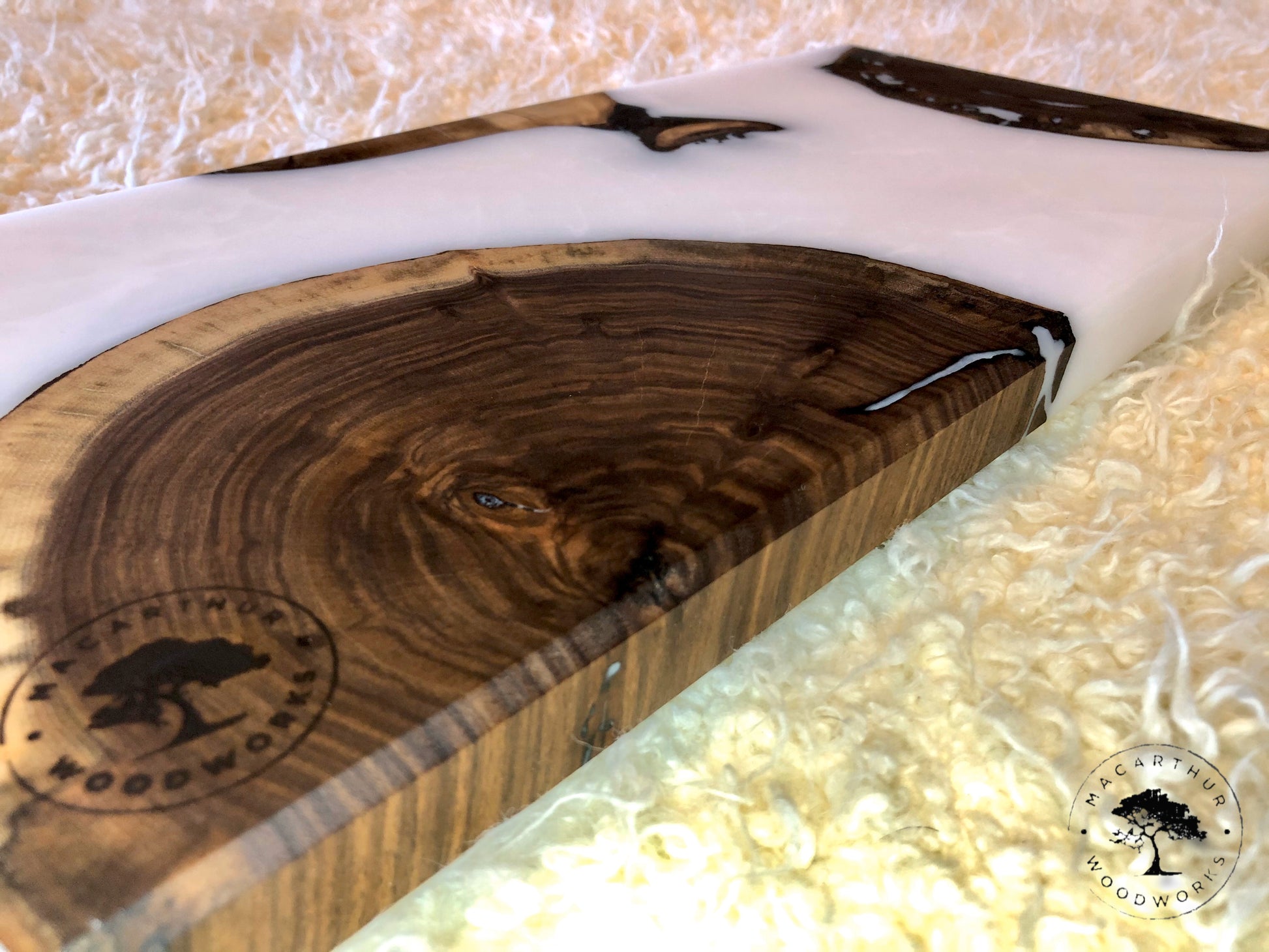 "Milk & Cookies" Board (Black Walnut Cookies w/ Super White Resin) for custom order