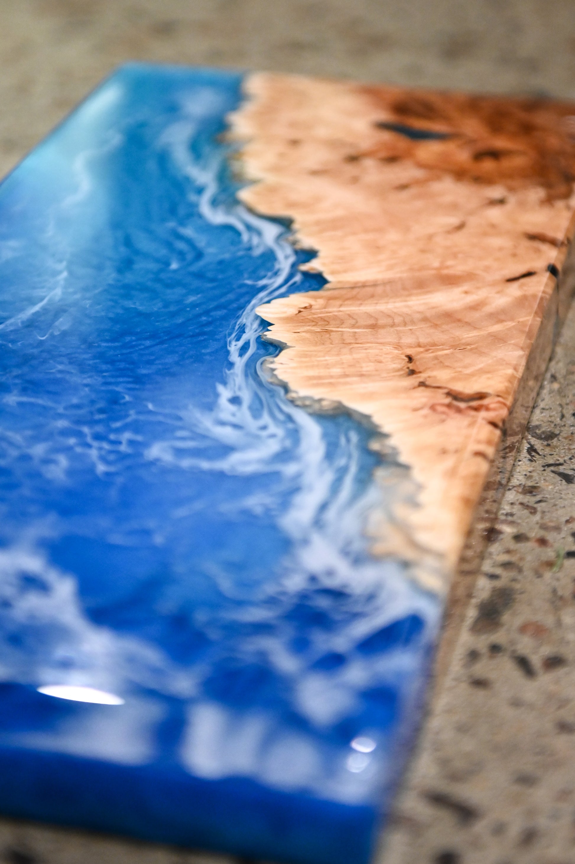 Our beloved resin charcuterie boards customized to look like the ocean!
